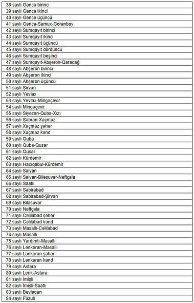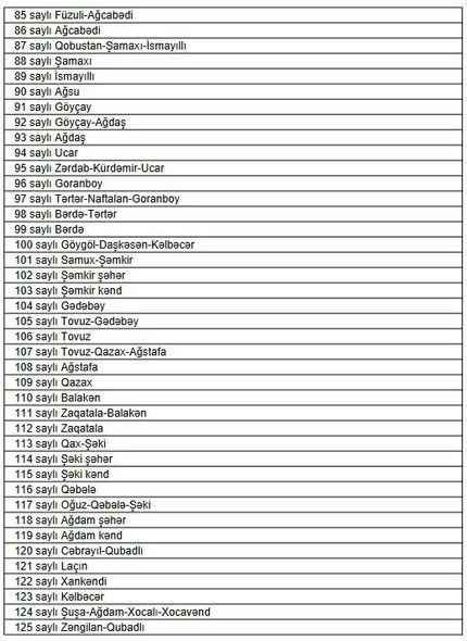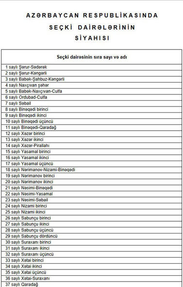 Yeni təsdiq olunan seçki dairələrinin sıra sayı və adlarını təqdim edirik: