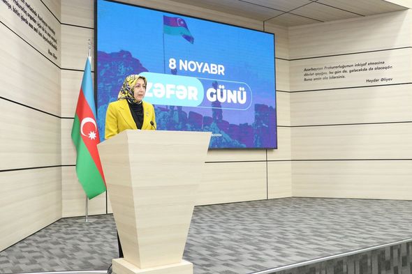 Tədbirdə vətən torpaqlarının azadlığı uğrunda şəhid olmuş hərbçilərin və mülki vətəndaşların əziz xatirəsi bir dəqiqəlik sükutla yad edildikdən sonra Baş prokuror Kamran Əliyev prokurorluq əməkdaşlarını, prokurorluğun veteranlarını və xalqımızı bayram münasibətilə təbrik edib.