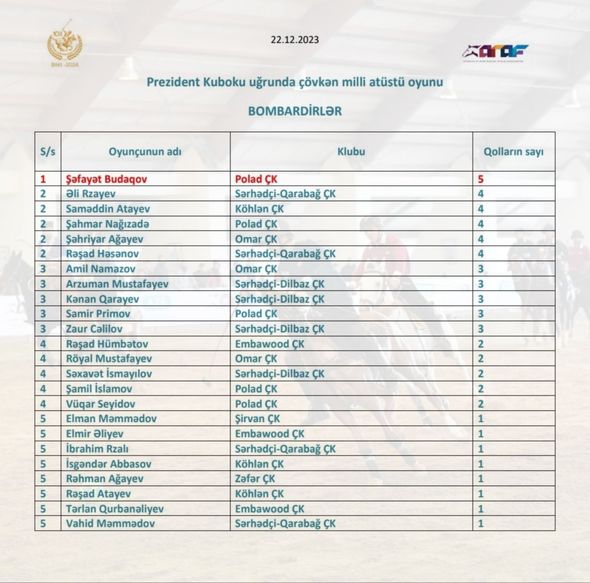 Dekabrın 15-də Azərbaycan Respublikası Atçılıq Federasiyasının təşkilatçılığı ilə start götürən Çövkən Milli Atüstü oyunu üzrə “Prezident Kuboku” turnirinin yarımfinal oyunları baş tutub.