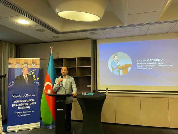 Yeni Azərbaycan Partiyasının (YAP) İdarə heyətinin üzvü, Azərbaycan Fransa Məzunları Assosiasiyası İctimai Birliyinin sədri və Azərbaycan-Fransız Universitetinin icraçı direktoru Vazeh Əskərov Azərbaycan-Fransa əlaqələrinin qurulmasının tarixindən, beynəlxaq təhsil sferasının inkişafından və gənclərimizin xaricdə təhsil zamanı birliyinin önəmindən danışıb.