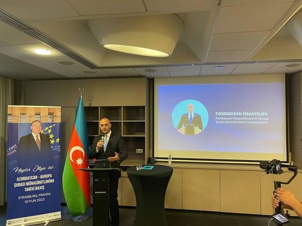 Azərbaycan Respublikasının Avropa Şurasına üzvlüyünün məhz ulu öndər Heydər Əliyevin qətiyyətli siyasi iradəsi sayəsində mümkün olduğunu vurğulayan ölkəmizin Avropa Şurası yanında daimi nümayəndəsi Fəxrəddin İsmayılov bu yolda qət edilmiş maneələrdən bəhs edib və Avropa Şurasına üzvlüyümüz vasitəsilə ölkəmizin uzun illər ərzində üzləşdiyi hərbi işğalın beynəlxalq səviyyədə qınanması və habelə ədalətsizliyin ifşa edilməsi istiqamətində əldə olunmuş nailiyyətləri xatırla.