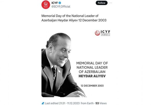 İslam Əməkdaşlıq Təşkilatı (İƏT) Gənclər Forumu xalqımızın ulu öndəri Heydər Əliyevin əziz xatirəsini yad edib.