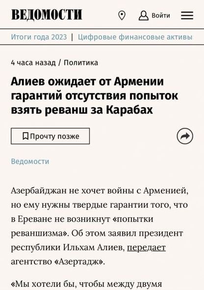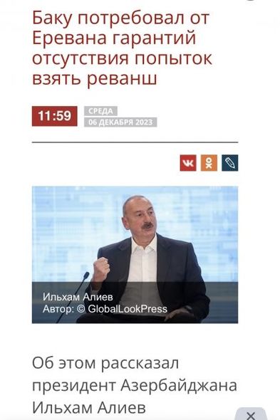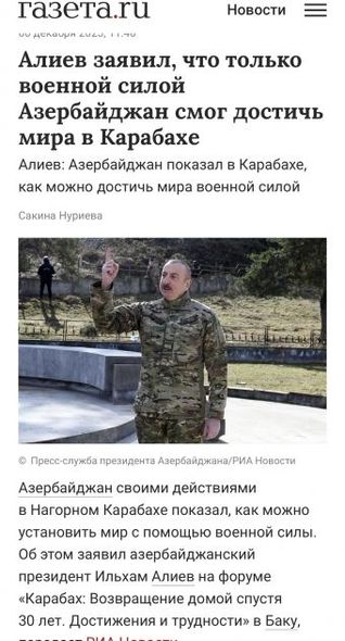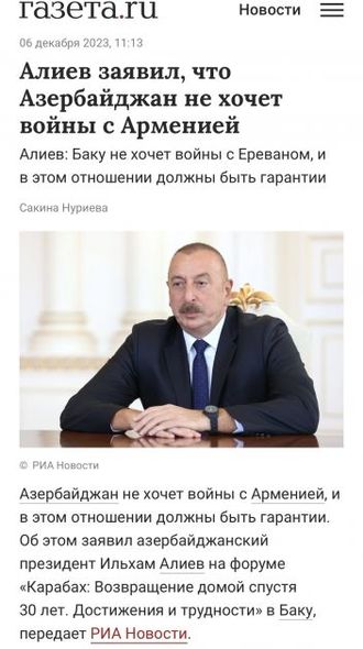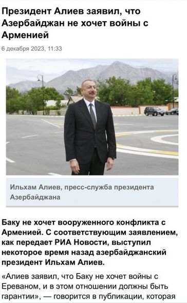 “İzvestiya” qəzeti Azərbaycan Liderinin sentyabrında keçirilən antiterror tədbirlərinin 24 saat çəkdiyi, dinc əhaliyə heç bir ziyan dəymədiyi barədə dediklərinə diqqət çəkib. Qəzet, həmçinin Ermənistan ilə sülh müqaviləsi imzalanması üçün Azərbaycan tərəfinin zəmanət tələb etdiyini də vurğulayıb.