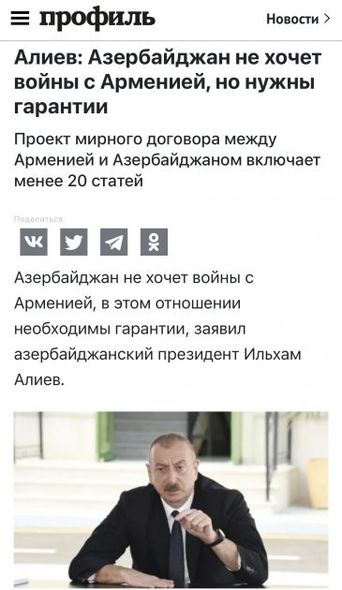“Arqumentı nedeli” nəşri yazır ki, Prezident İlham Əliyev çıxışında Azərbaycan İrəvanla müharibəyə can atmadığını vurğulayıb və sülh müqaviləsinin bağlanması üçün Ermənistanda revanşist cəhdlərin olmayacağına zəmanət tələb edib.