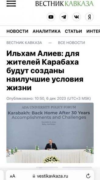 “Vestnik Kavkaza” agentliyi yazır ki, Prezident İlham Əliyev Qarabağın erməni əhalisinə Azərbaycan cəmiyyətinə inteqrasiya edə bilməsi üçün seçim verildiyini bildirib. Azərbaycan Liderinin öz yurd-yuvasına qayıdan keçmiş qaçqın və məcburi köçkünlər üçün hər bir şərait yaradılması, azad olunmuş ərazilərin bərpası prosesinin sürətlə getməsi, separatçı rejimin başçılarının sülh prosesinə mane olmaları, indi isə Azərbaycanda məhkəmənin qərarını gözlədikləri barədə fikirləri də agentliyin materiallarında əksini tapıb.
