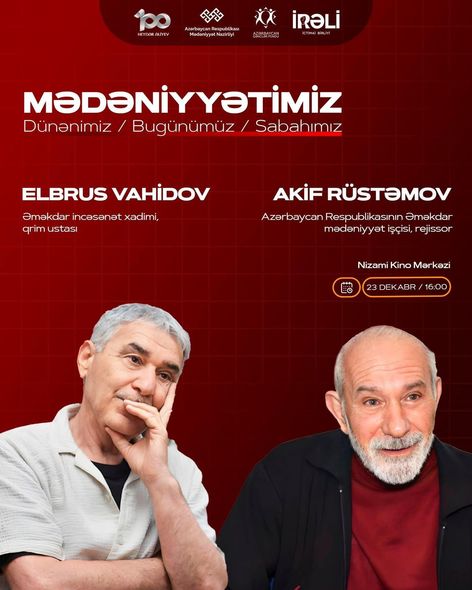 Azərbaycan Respublikası Mədəniyyət Nazirliyinin dəstəyi, “İRƏLİ” İctimai Birliyinin təşkilatçılığı ilə Əməkdar mədəniyyət işçisi Akif Rüstəmov və Əməkdar incəsənət xadimi Elbrus Vahidovla görüş keçiriləcək.