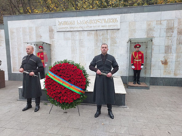 Bildirilib ki, əvvəlcə general-polkovnik Z.Həsənov nümayəndə heyəti ilə birgə Tbilisinin mərkəzindəki Qəhrəmanlar meydanını ziyarət edib və Gürcüstanın ərazi bütövlüyü uğrunda həlak olanların abidəsi önünə əklil qoyub.