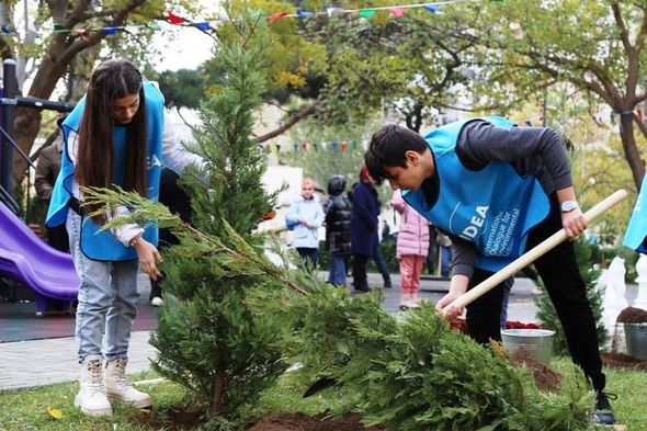 Həyətin ərazisindəki mövcud yaşıllıqların bərpası ilə yanaşı, 260 ədəd müxtəlif növ ağac və 15 000-ə qədər kol əkilib, 2 400 kvadratmetr ərazidə yaşıllıq zolağı salınıb. Bununla yanaşı, həyətin ətraflarında sıx bitən və hava çirklənməsini effektiv şəkildə azalda bilən adi daşsarmaşığı və digər sarmaşan bitkilər əkməklə “yaşıl sədlər” yaradılıb.