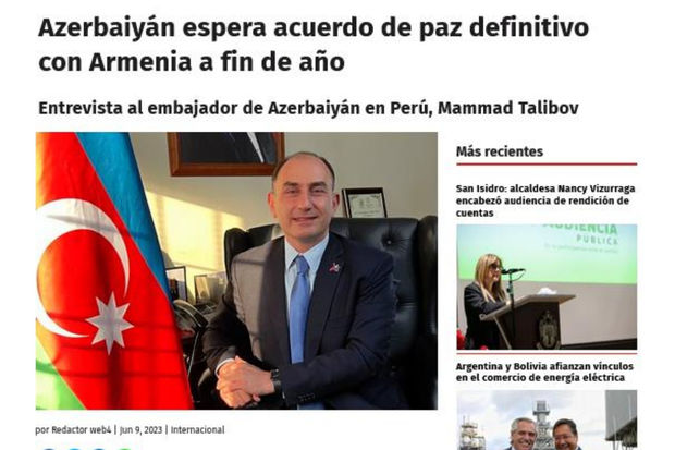 Perunun geniş oxucu auditoriyası olan “La Razon” qəzetində bu ölkədəki səfirimiz Məmməd Talıbovun Ermənistanın sülh prosesində yaratdığı maneələrdən bəhs edən müsahibəsi dərc olunub.