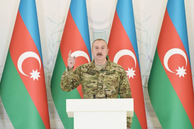 Dövlət başçısı onu da deyib ki, Qarabağ bizim əzəli torpağımızdır: “Rus sülhməramlıları orada müvəqqəti yerləşiblər, 2020-ci ilin 10 noyabr Bəyanatında onların müddəti göstərilir və əgər kiməsə bel bağlayırlarsa, yenə də faciə ilə üzləşəcəklər”.