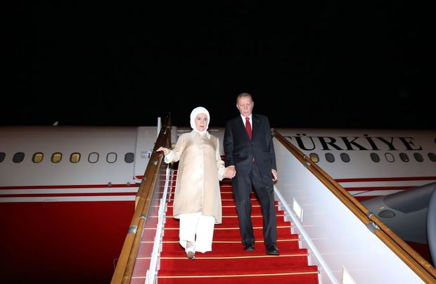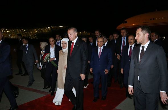 Türkiyə Prezidenti Rəcəb Tayyib Ərdoğanı və xanımı Əminə Ərdoğanı hava limanında Azərbaycan Respublikası Baş nazirinin birinci müavini Yaqub Eyyubov, xarici işlər nazirinin müavini Xələf Xələfov və digər rəsmi şəxslər qarşılayıblar.